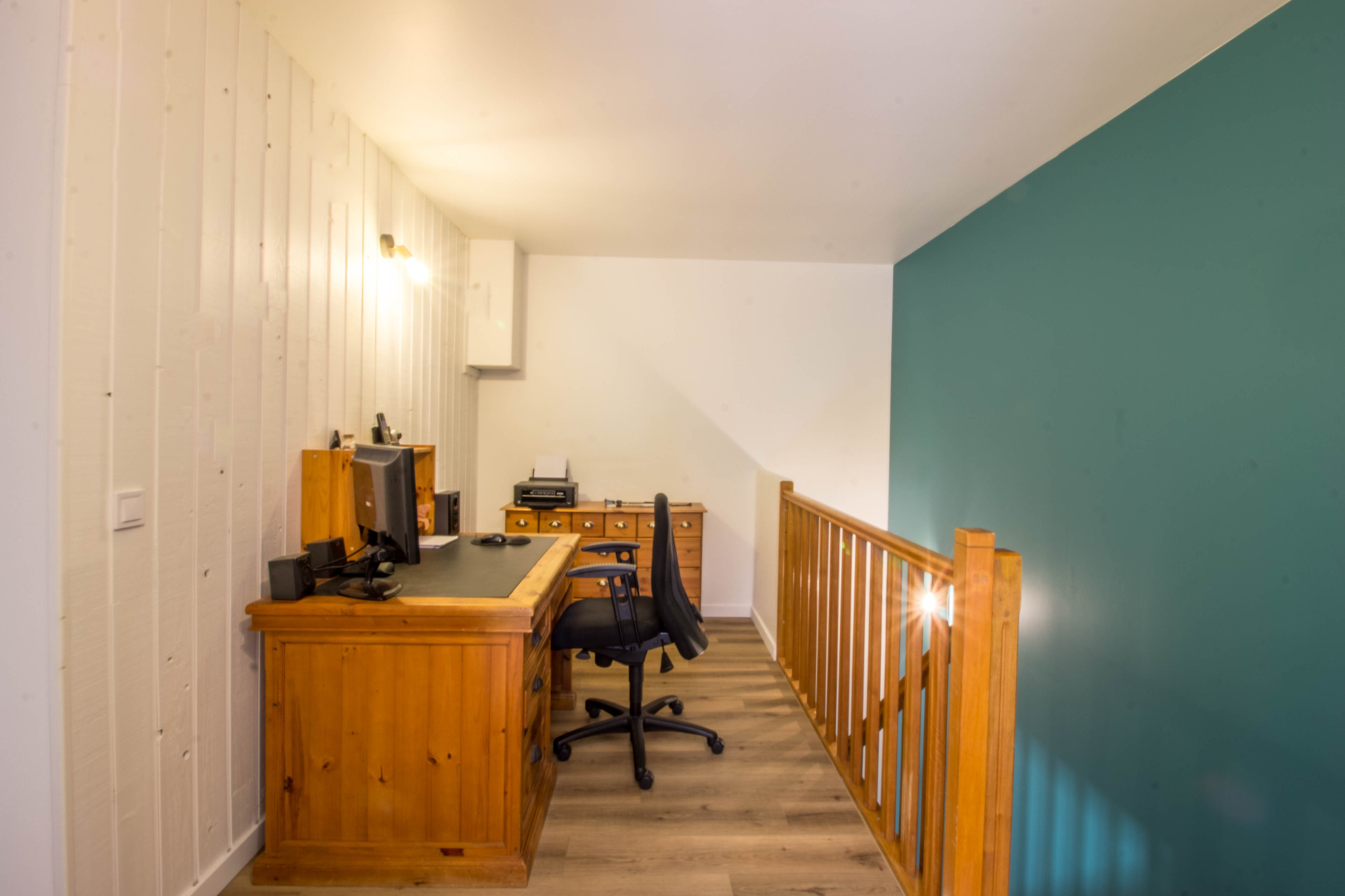 - Un espace bureau aménagé sur le palier,