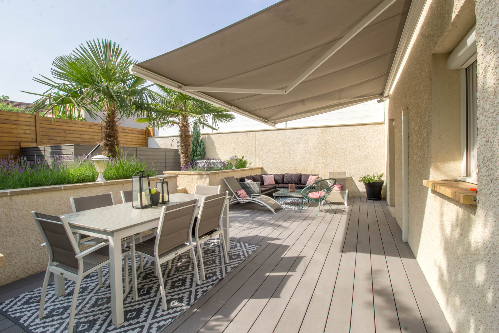 Le jardin est entiérement arboré avec goût et des matériaux de qualité. Vous pourrez également passer de très belles soirées sur la terasse avec son store banne éléctrique.