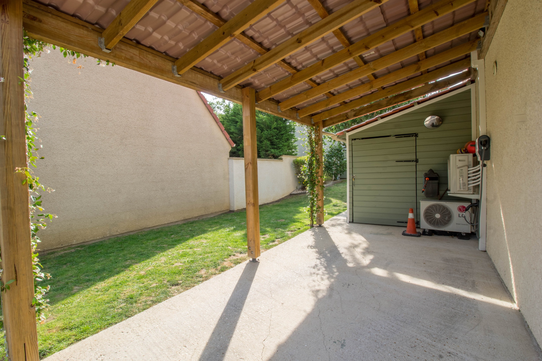 Sur le côté de la maison, un carport avec l'installation d'une borne éléctrique et un grand abri bois pour tous vos rangements extérieurs.