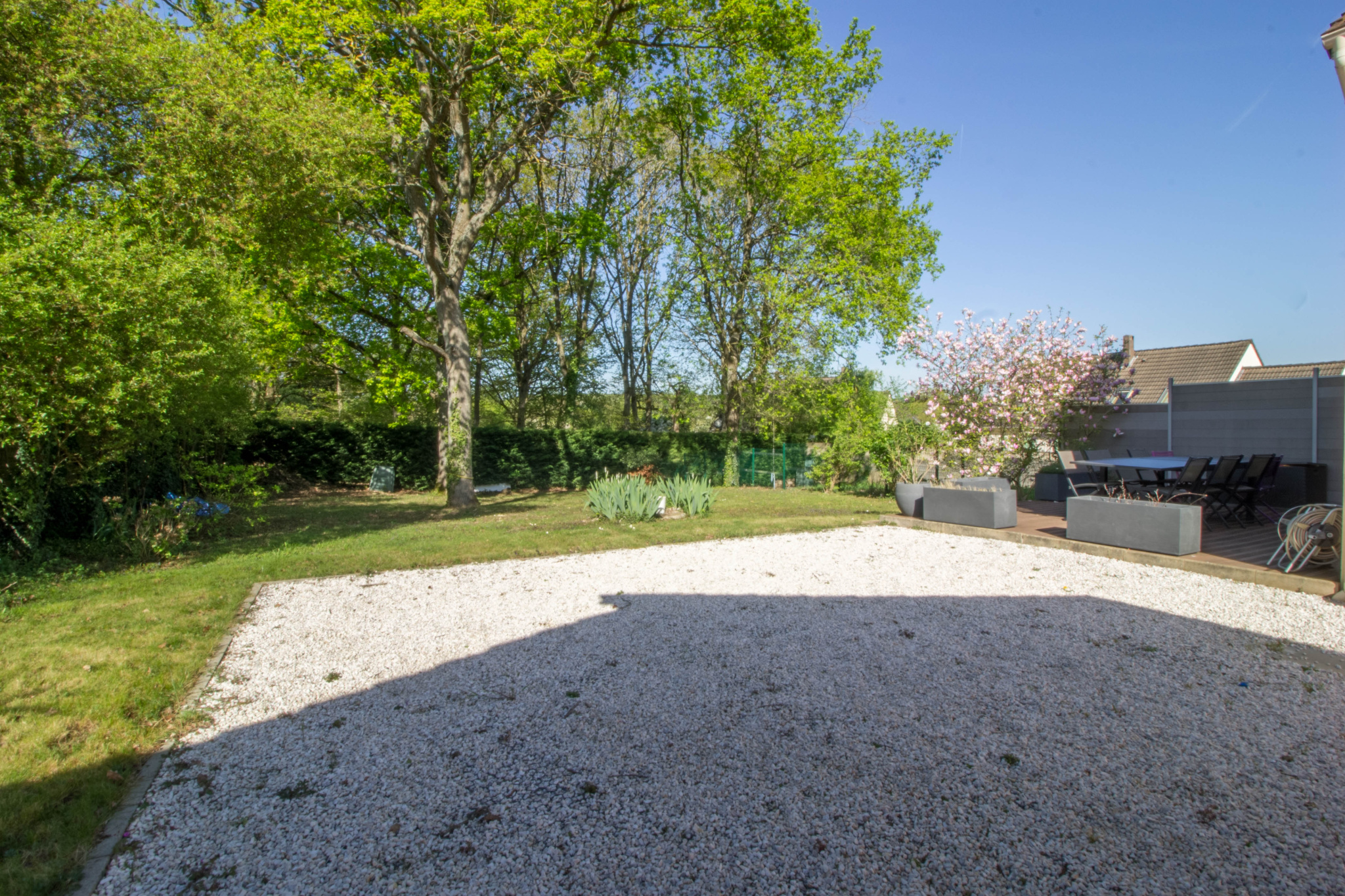 - Un grand séjour avec coin salle à manger et salon de 44m2, menant directement sur la terrasse et le jardin,